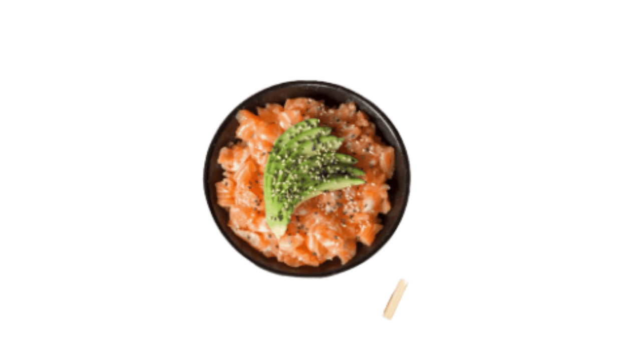 Emincé de saumon accompagné d'un bol de riz vinaigré, avocat