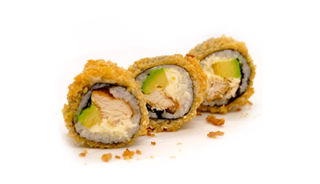 8 Crunchy rolls poulet katsu avocat boursin : poulet pané, cheese, feuille d'algue, enroulé de riz vinaigré pané