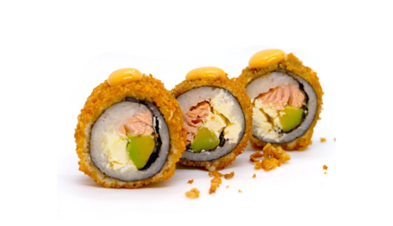 8 Crunchy rolls saumon avocat cheese: saumon, avocat, cheese, feuille d'algue, enroulé de riz vinaigré pané