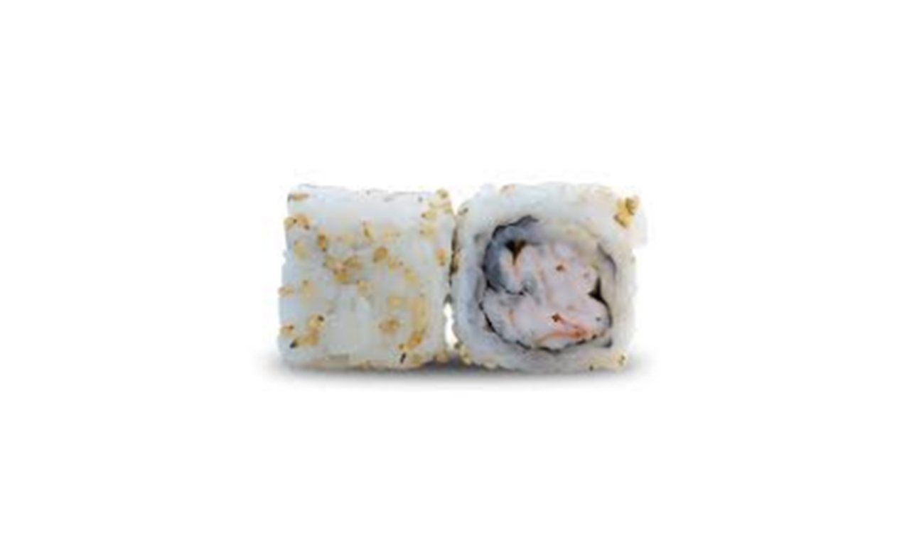 8 rolls california : feuille d'algue enroulée dans du riz vinaigré, crevette cru, mayonnaise, sésame